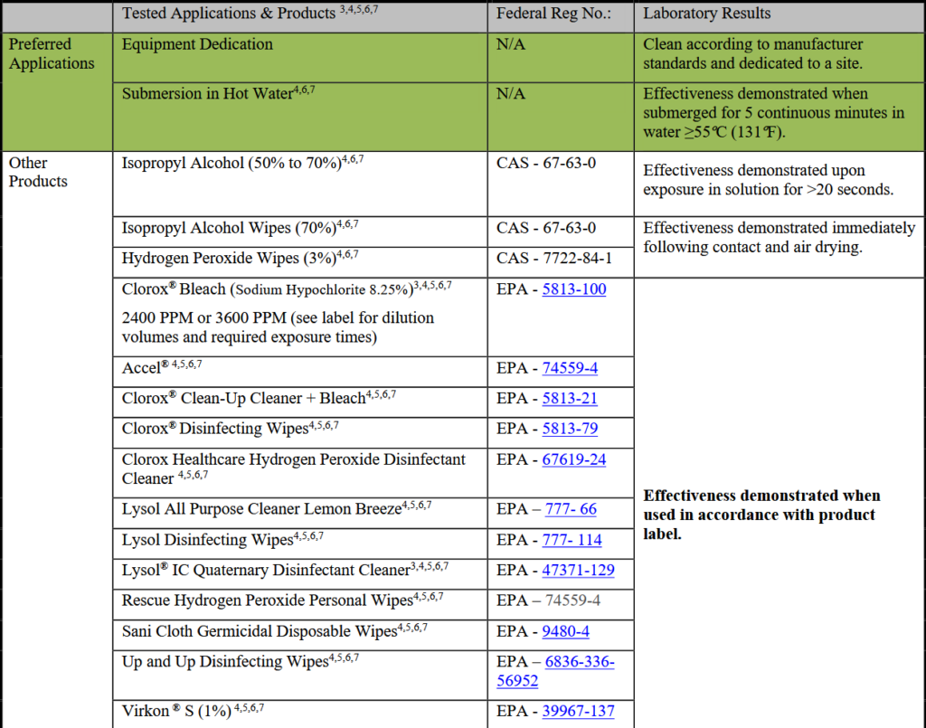 Clean and decontaminate gear following the guidelines published by www.WhiteNoseSyndrome.org, quick reference guides below. Be sure to follow instructions on the cleaning products and take care when cleaning safety gear.